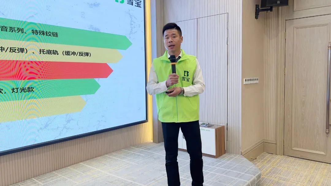 產品好也要具備過硬的專業產品知識進行宣導才能體現它的價值!會上,華北區域五金業務經理譚凱文系統講解雪寶五金產品介紹。對比市面上傳統的五金,雪寶五金有著不可比擬的優勢,更是在把產品品質做到極致的同時,不斷開發出更符合潮流前沿的功能顏值兼具、消費者叫好的優質五金產品推出市場。