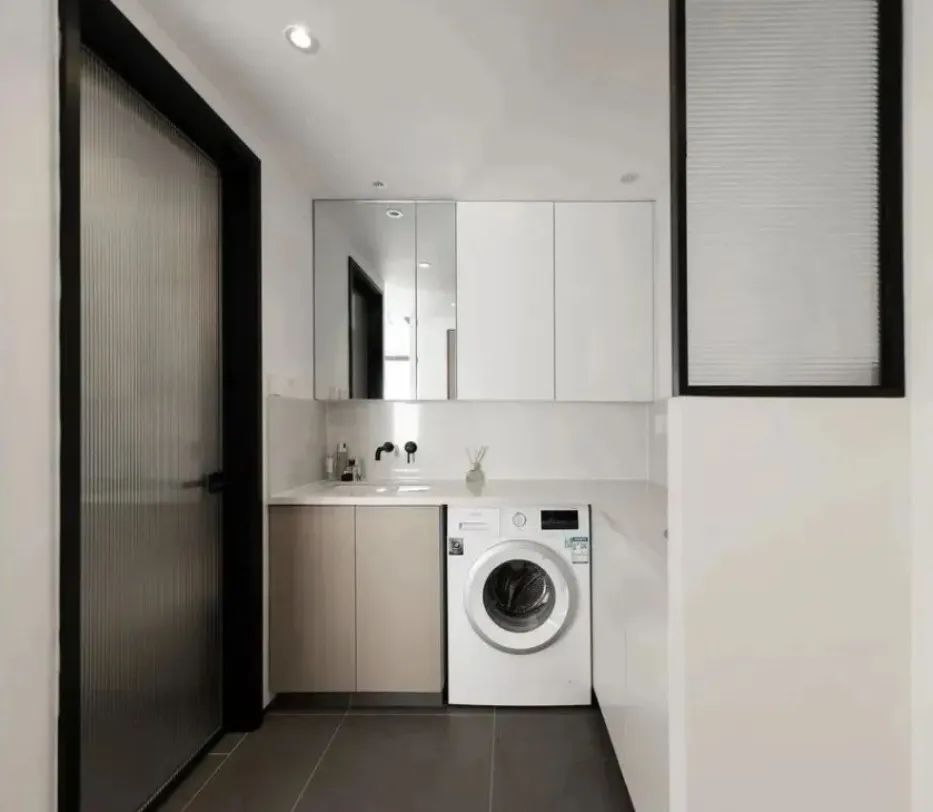 沒有絲毫多余的裝飾物,簡單的線條提升了高級感,用深淺不一的色塊進(jìn)行空間劃分,進(jìn)一步優(yōu)化了布局。