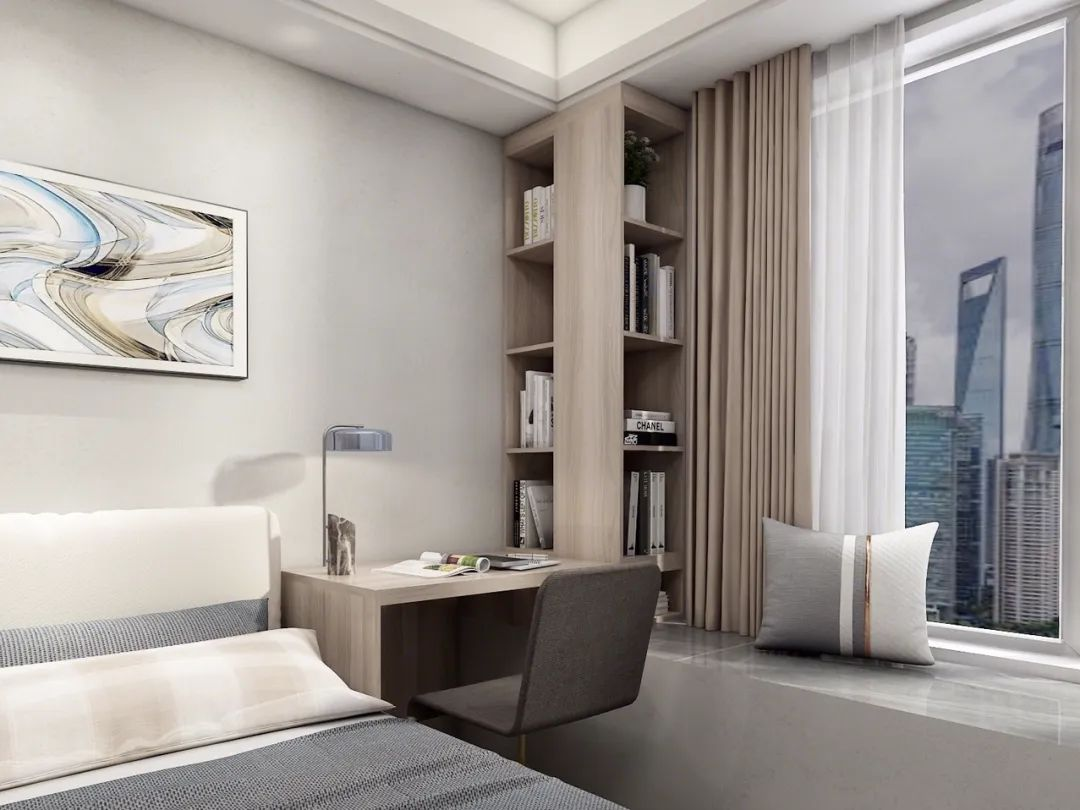 一寸地一寸金+極致利用飄窗不僅僅可以縱向利用,還可以橫向利用空間,在飄窗的側(cè)面設(shè)計(jì)柜子,就可以用來(lái)擺放書(shū)籍或者收納儲(chǔ)物,實(shí)用性很強(qiáng)。