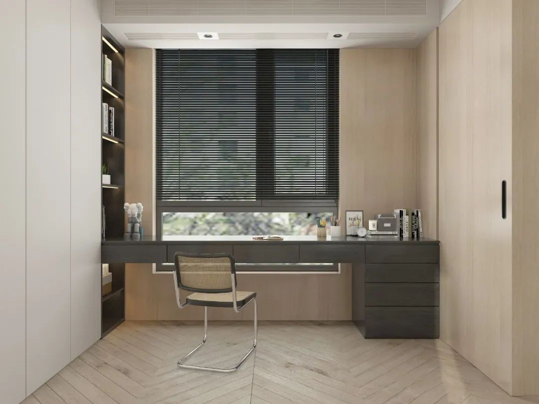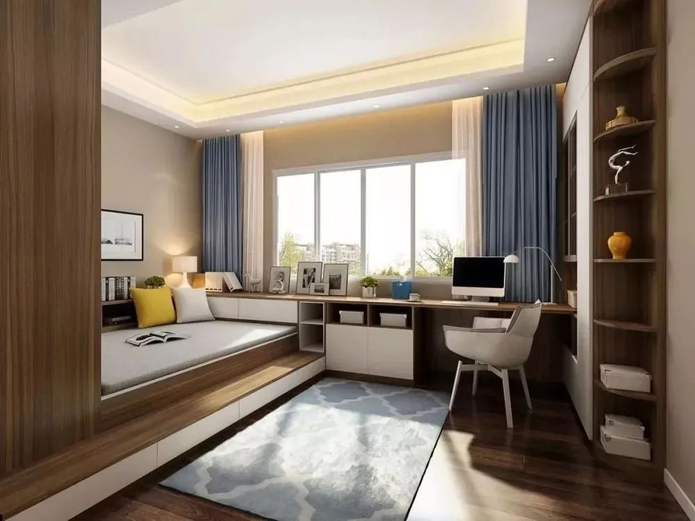 但如果空間較狹窄,則可以充分利用飄窗四周空間,設(shè)計(jì)出一款書(shū)柜與書(shū)桌相結(jié)合的一體式柜子,這下就再也不用羨慕別人家有書(shū)房了!