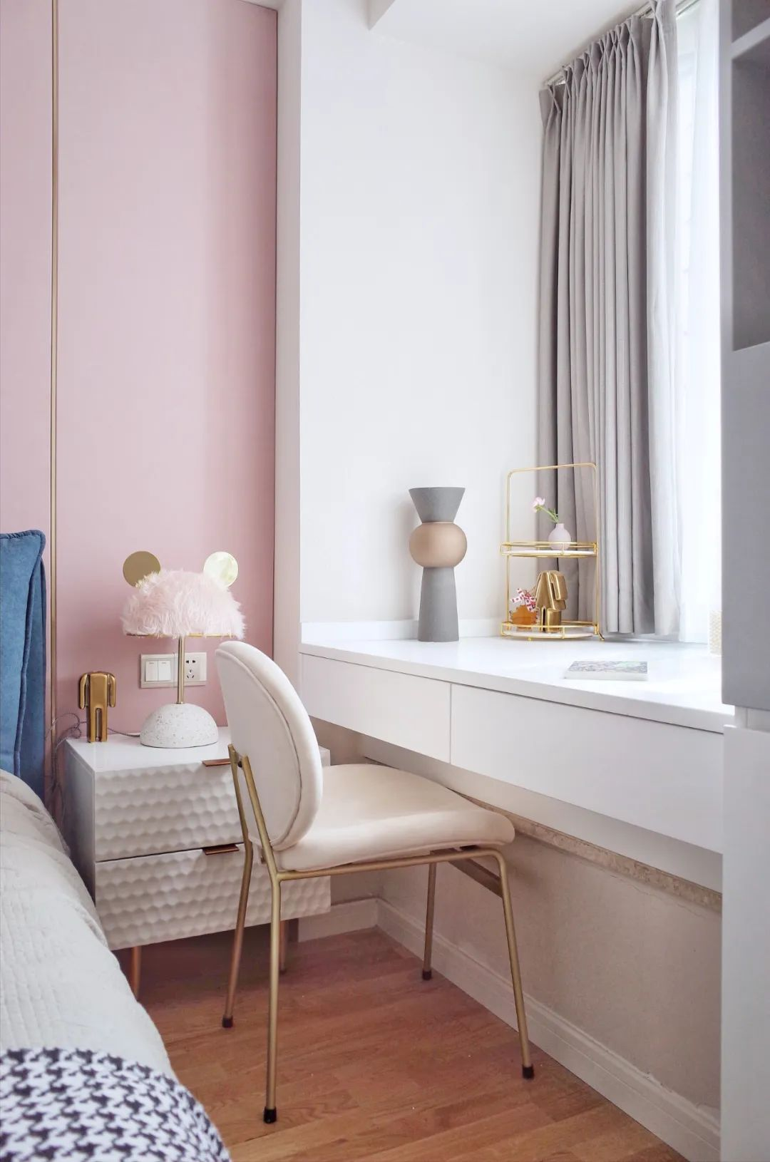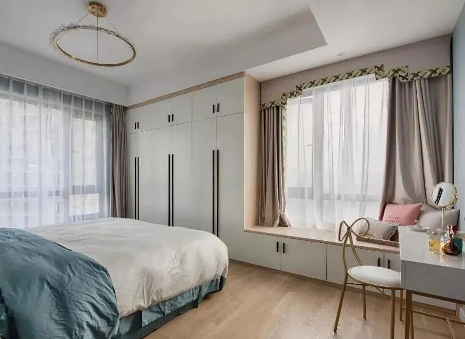 如果家中的飄窗是不能拆改的,那么還可以直接在飄窗的上方加抽屜,增加收納空間,非常實(shí)用。加高了飄窗后,還能把飄窗設(shè)計(jì)成梳妝臺(tái),讓小臥室也更加實(shí)用。