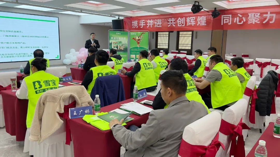 雪寶品牌菏澤運(yùn)營(yíng)中心總經(jīng)理曹培訓(xùn)先生、雪寶華北營(yíng)銷中心總監(jiān)陳家義先生、雪寶華北生態(tài)板、家具板事業(yè)部山東省區(qū)域負(fù)責(zé)人及華北后臺(tái)團(tuán)隊(duì)人員出席會(huì)議。
