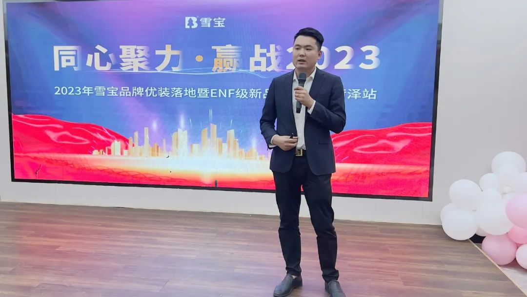 為持續(xù)鞏固合作基礎(chǔ),著力擴(kuò)大發(fā)展成果。3月28日,以“同心聚力·贏戰(zhàn)2023”為主題的雪寶品牌優(yōu)裝落地暨ENF級(jí)新品推介會(huì)“菏澤站”成功召開,來自菏澤地區(qū)10多家優(yōu)秀合作伙伴齊聚一堂,共創(chuàng)共贏。