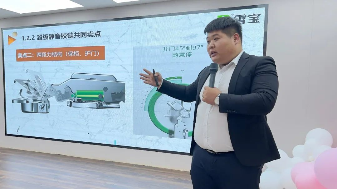 雪寶華北家具板事業(yè)部山東省區(qū)經(jīng)理趙蘭仕先生現(xiàn)場(chǎng)講解雪寶五金產(chǎn)品知識(shí),從產(chǎn)品研發(fā)、使用性能、生產(chǎn)工藝、營(yíng)銷設(shè)計(jì)、產(chǎn)品質(zhì)檢體驗(yàn),以及品牌強(qiáng)大售后服務(wù)等多維度展開系統(tǒng)、專業(yè)的介紹,幫助各位合作伙伴在一次的清晰了解雪寶五金的核心差異化優(yōu)勢(shì)。