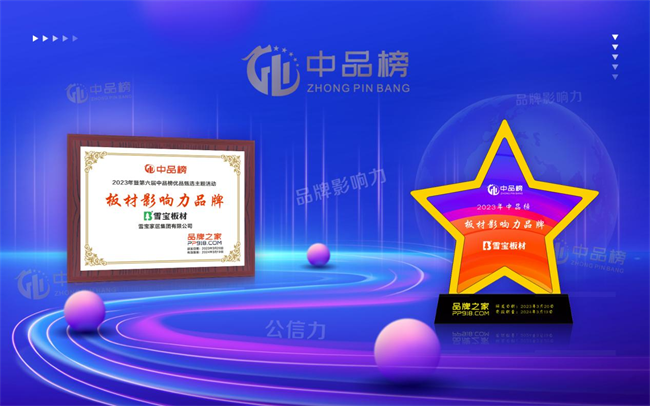 實(shí)力登頂!雪寶板材斬獲“中品榜2023年度板材十大品牌”大獎(jiǎng)