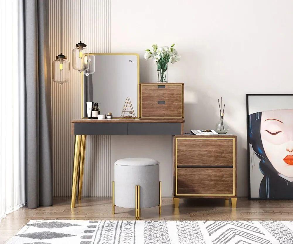女為悅己者容的時代已經過去了,現在女生化妝更多的是為了讓自己心情好。將梳妝臺與床頭柜合二為一,可謂是強強聯合。