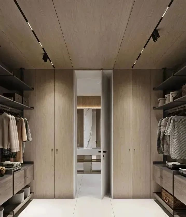 一般衣柜內部分區會有長衣區、短衣區、疊衣區,如果你很喜歡穿長裙或長款大衣的話,就多預留一些空間來做長衣區。