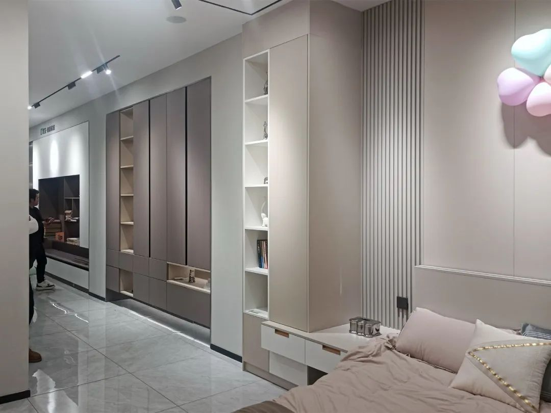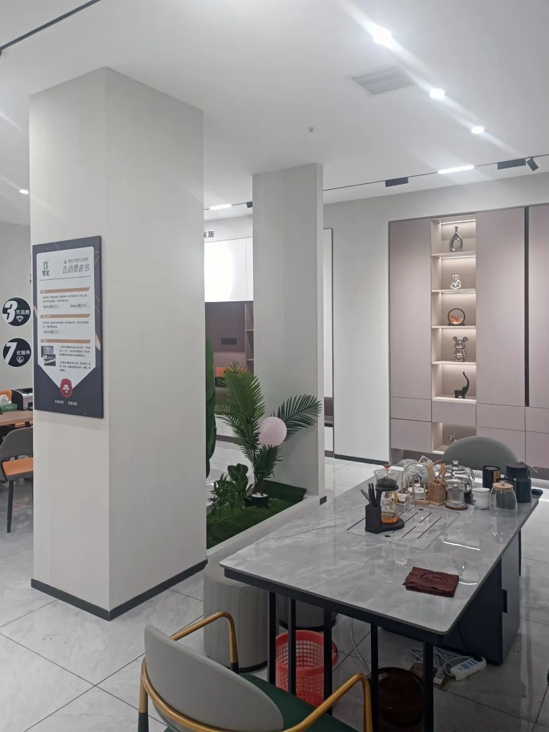 雪寶優裝門店基于“材料展廳、體驗式展廳、共享展廳”3大功能空間定位,大大提高了門店的競爭力。材料展廳即指裝修材料透明化,消費者可以清楚看到裝修中使用的每一個材料,質量更放心。體驗式展廳則是把當下流行的設計風格呈現出來,通過合理搭配柜體柜門花色以及五金產品,讓消費者更直觀做出選擇,真正實現所見即所得。而共享展廳則是滿足了木工師傅、設計工作室、裝飾公司等合作渠道的訴求,通過展示材料、呈現樣柜、真實案例,讓業主朋友買得安心、用得放心。