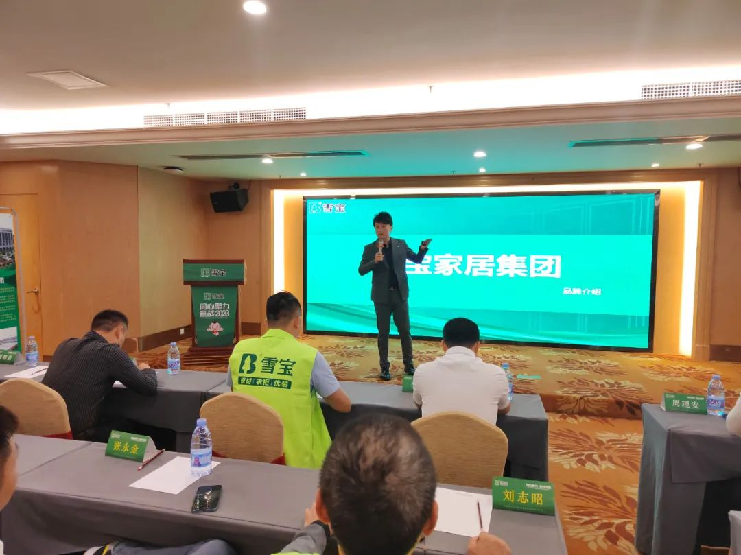 會議伊始,雪寶泉州地區總經銷黃躍先生在會上致發言詞。他表示:“時代在不斷進步,傳統板材經銷商目前面臨著如何才能長久地活下去這一問題。現在只有緊跟時代和家居建材行業一同進步,不斷升級迭代自己的運營邏輯,才能破局制勝。在諸多地區成功案例的涌現下,再次證明了落地優裝的準確性和必然性。準確把握市場機遇,匯聚集體的智慧和力量,共同將雪寶打造成符合消費者喜愛的知名品牌是大家的同一目標。希望大家能夠緊隨品牌發展的步伐,全力沖刺!”