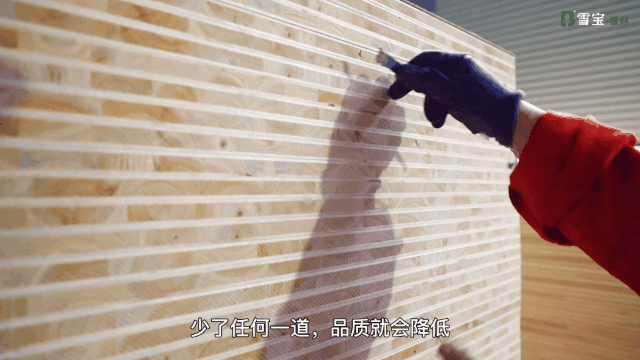 普通的生態板是使用低溫低壓短周期的工藝,雪寶負離子醇香板使用先進的全自動生產線,經過長時間的原木養生周期后,才進行斷料、開料、齒接、烘干、冷壓、熱壓、砂光、貼面等嚴苛的46道工序精制而成,板面平整光滑,成板結構層次分明。