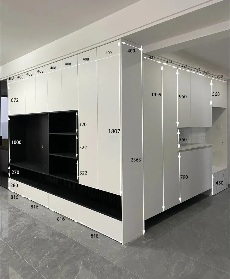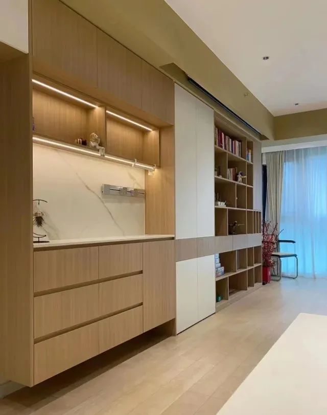因此,根據戶型結構和自身需求綜合考慮,將柜體功能整合,一體化定制設計,可以讓空間利用更加充分合理,更好地服務于居住者。