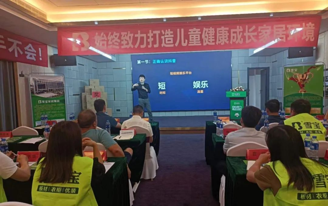 會中,針對區域市場情況以及客戶學習訴求,以及強化和突出品牌的獨特差異化優勢以及產品的核心競爭力,有著豐富實戰經驗的雪寶金牌講師們為蒞會的經銷商合作伙伴帶來系統的課程講解,讓每一位經銷商進一步強化了品牌和產品的優勢賣點。同時,針對當下獲客的超級流量平臺“抖音”展開課程介紹,幫助經銷商用正確的方法去做屬于家居建材人的抖音號,最終通過抖音實現線上拓客、線下成交。