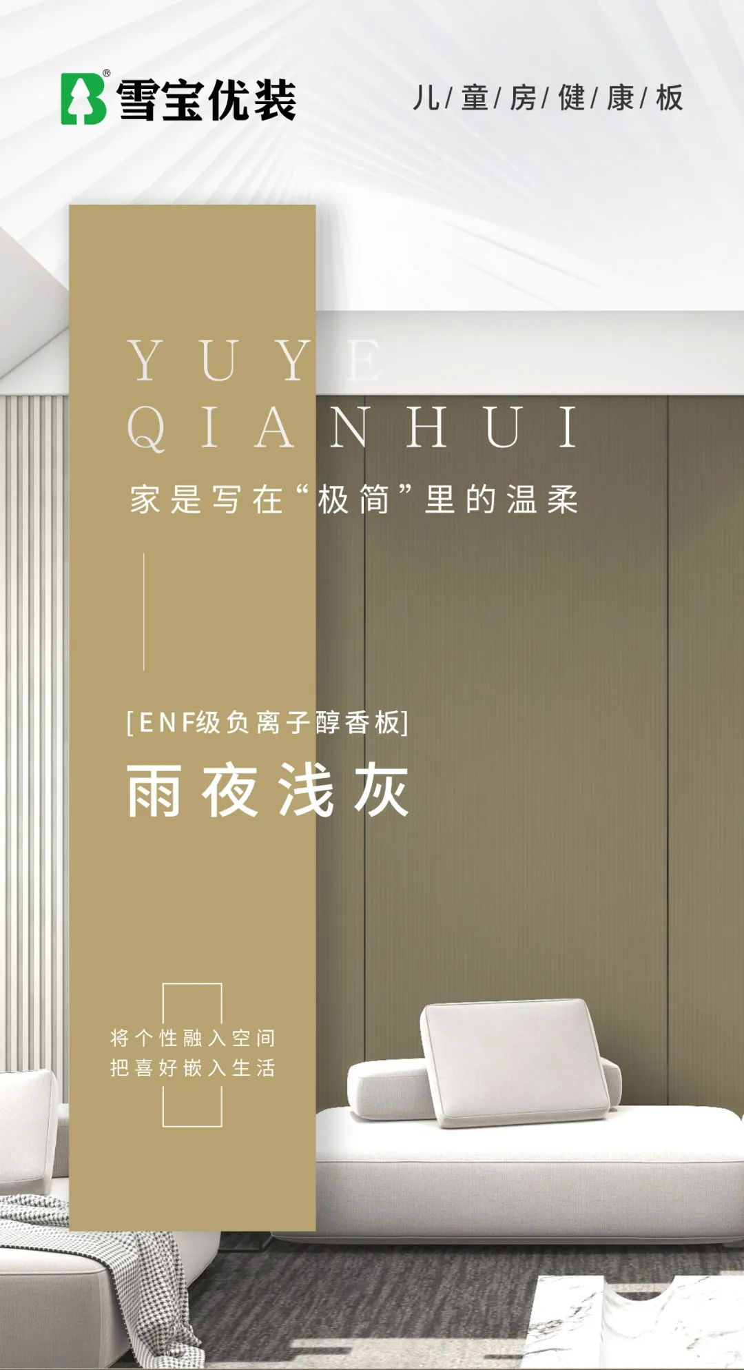 雪寶ENF負離子板材醇香板“雨夜淺灰”:家是寫在“極簡”里的溫