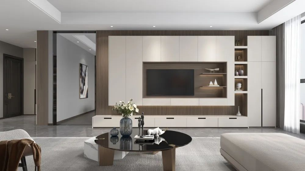 C字型電視柜也叫半包圍電視柜,增加收納量的同時讓空間更有設(shè)計感。適用于進深和面寬較寬裕的戶型;以及對柜體設(shè)計感有追求的人群。