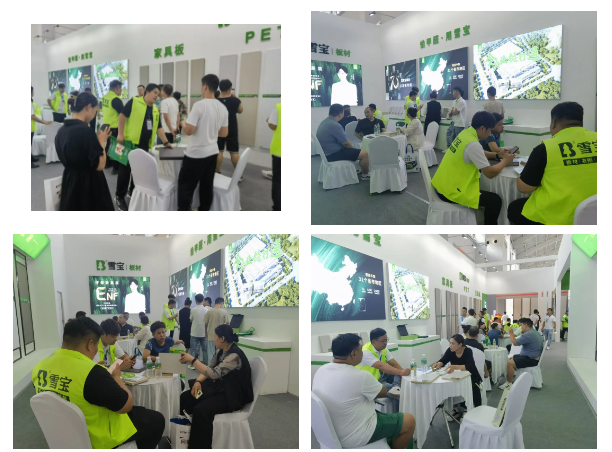 此次展會,前來雪寶板材展區咨詢的客戶絡繹不絕,現場人聲鼎沸,熱鬧非凡。雪寶品牌華北營銷中心的精英們在陳總的帶領下,火力全開,全體人員都展現出信心百倍與無懈可擊的氣勢,全力以赴堅決不錯過每一個客戶,用專業技能服務和解決客戶疑難點。通過精心設計,雪寶展館奪目大氣,成為會場矚目的焦點。雪寶生態板、家具板、配套五金、主流柜門等系列產品悉數亮相,同時雪寶ENF級系列產品也得到眾多客戶的選擇和信賴。