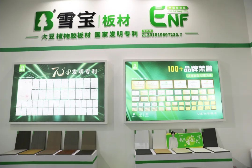 雪寶展位為蒞會的裝企伙伴們以及廣大消費者帶來了雪寶ENF級系列產品,涵括實木生態板、多層家具板、凈味·純芯板(OSB)、PET門板等綠色品質高環保產品,通過展位大氣醒目的品牌全國布局網點、100+品牌榮譽、70+產品專利等燈箱廣告展示,全方位呈現“兒童房健康板”創立者以及環保標準首倡者的雪寶風采。