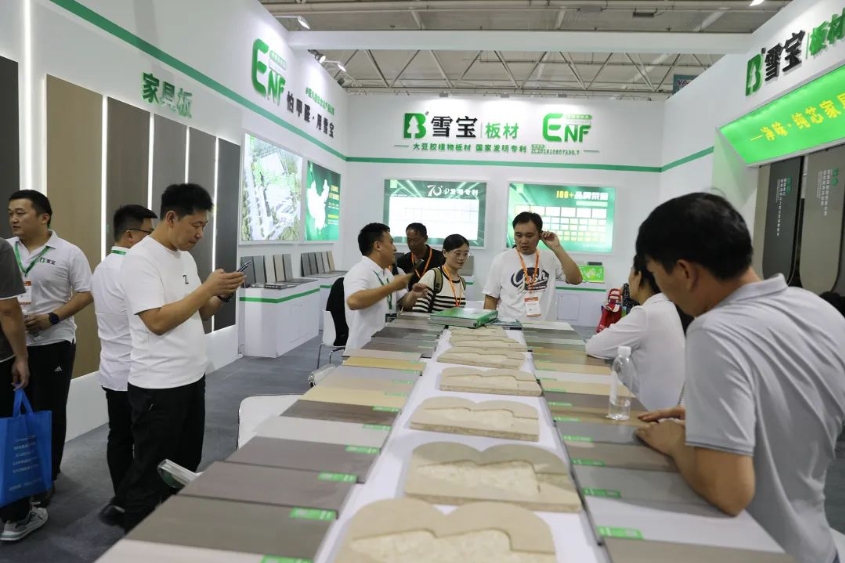 展會期間,現場人氣爆棚,展位人頭攢動,從最初被展館精心的設計所吸引駐足,再到后來深入了解板材生產工藝以及展館內陳列的優質板材產品,雪寶展位引來無數參展者駐足流連。