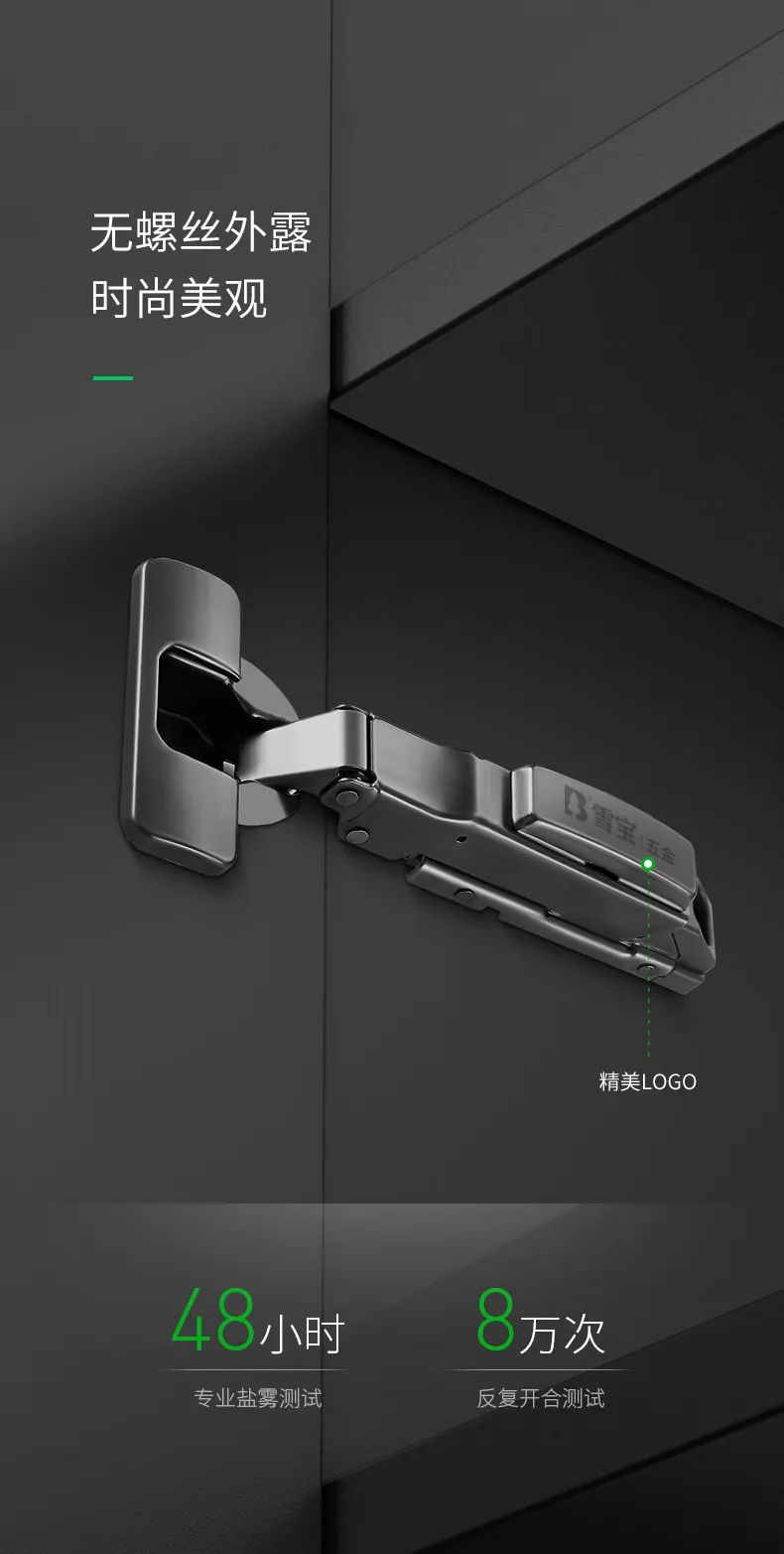 鉸鏈雖然隱藏在家具的背后,但卻是廚柜、衣柜等家具的幕后英雄。在每個家庭中,衣柜、地柜、電視柜、櫥柜、餐邊柜、儲物柜等家具的柜門連接處都要用到鉸鏈,而一些柜子在我們日常生活中每天開啟關閉的次數可達10多次甚至更高。所以,一個鉸鏈的好壞決定你的家具性能,家具壽命,進而影響你的家居生活體驗。今天我們一起來看看具有超強競爭力、超強功能性、超具性價比的雪寶五金產品超級靜音鉸鏈系列產品的“388一字摩鉸”!