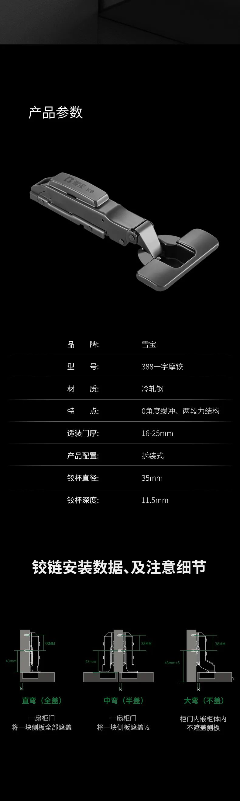 雪寶超級靜音鉸鏈388一字摩鉸:安全靜音,保柜護門的好鉸鏈