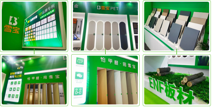 雪寶為蒞會的客戶伙伴以及廣大消費者帶來了雪寶ENF級系列產品,涵括實木生態板、多層家具板、凈味·純芯板(OSB)、PET門板、雪寶五金等高品質高環保的產品,受到了觀展人士的廣泛關注。同時結合品牌廣告展示核心優勢,全方位呈現“兒童房健康板”創立者以及環保標準首倡者的雪寶風采。
