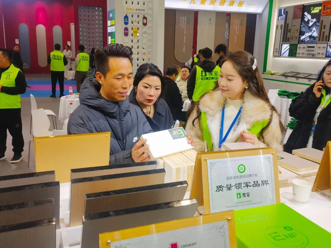 作為中西部家居類展會的品牌旗艦展會,雪寶品牌立足“零醛環保、健康品質、功能顏值”的根本,向廣大客戶和消費者全面展示“兒童房健康板”的品牌魅力和產品實力。雪寶1C-002展位用醒目大氣的高顏值、卓越領先的產品力、配套齊全的服務力吸引廣大賓客朋友走進展位現場,深入了解板材生產工藝以及展館內陳列的優質產品,以及進行詳細溝通和洽談合作事宜。