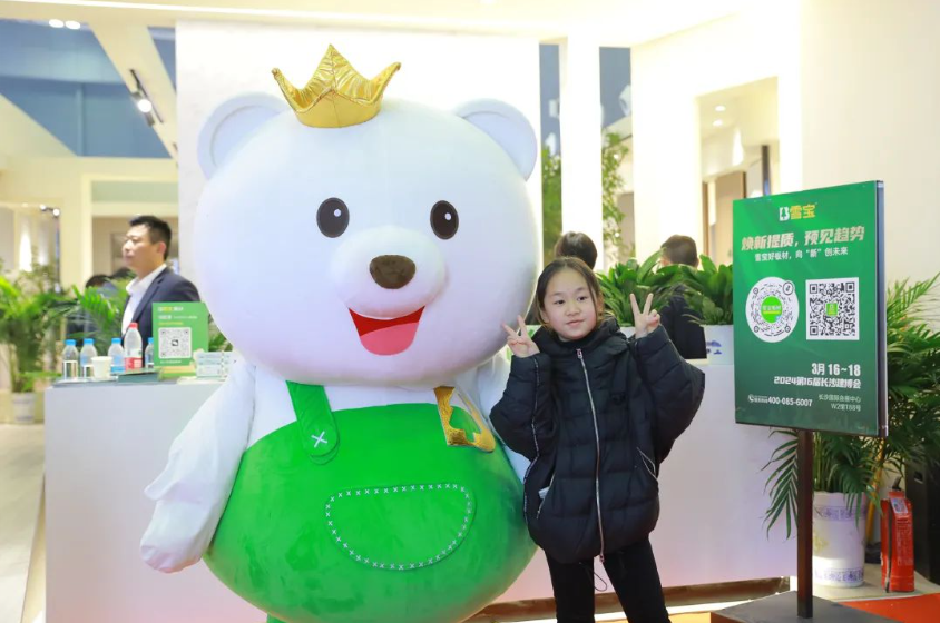 在展會(huì)現(xiàn)場(chǎng),雪寶全新的品牌VI以及超級(jí)IP形象通過本屆長(zhǎng)沙建博會(huì)首次與廣大消費(fèi)者見面,IP人偶服裝扮互動(dòng)和精致的IP手辦免費(fèi)相贈(zèng),也引來眾多參展人士的打卡和領(lǐng)取,大家紛紛與雪寶超級(jí)IP形象合影留念并點(diǎn)贊。