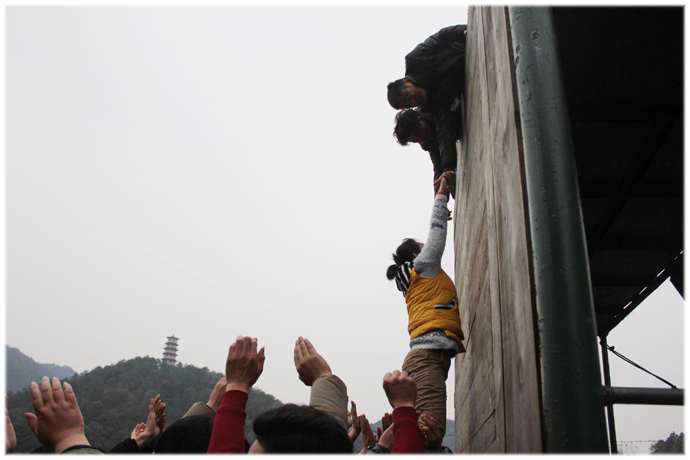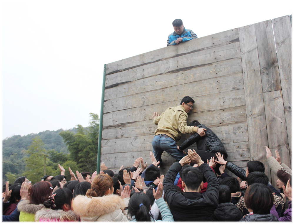 此次培訓現場將學員分成了四大團隊——“雄鷹隊”、“飛鷹隊”、“飛虎隊”、“超越隊”,通過接受各項挑戰,來激發學員各項能力。此次設置的挑戰有:“擂鼓擊球”、“高空斷橋”、“急速60秒”、“穿越高墻”。參訓過程中,各團隊成員都認真聆聽、積極參與、踴躍發散思維,并在游戲環節積極投入,爭取為團隊獲得更多的分數。