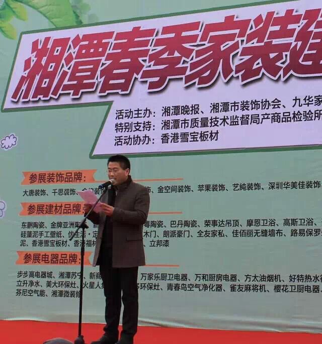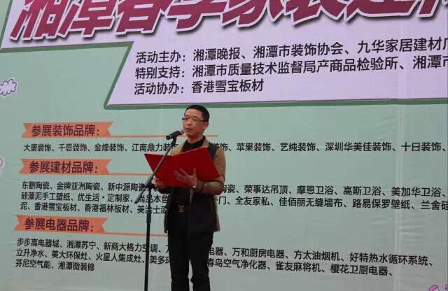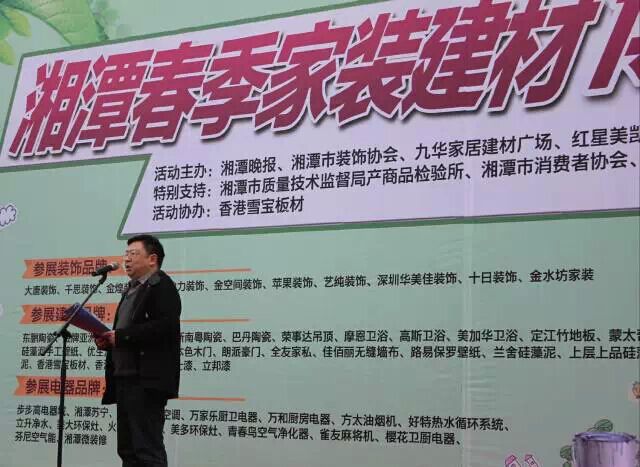 2015年3月13-15日, “2015春季家裝建材博覽會•湘潭站”在九華家居建材廣場正式拉開序幕。此次活動由湘潭晚報、湘潭市裝飾協會、九華家居建材廣場、紅星美凱龍家居廣場主辦,湘潭市質量技術監督局產商品檢驗所、湘潭市消費者協會特別支持,雪寶板材作為此次活動獨家協辦單位亮相于此次博覽會中,成為備受矚目的品牌。