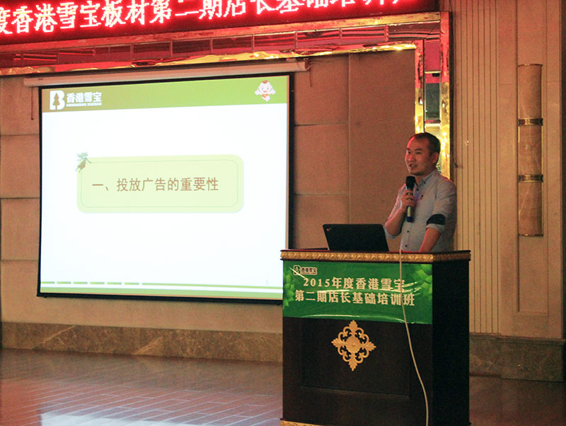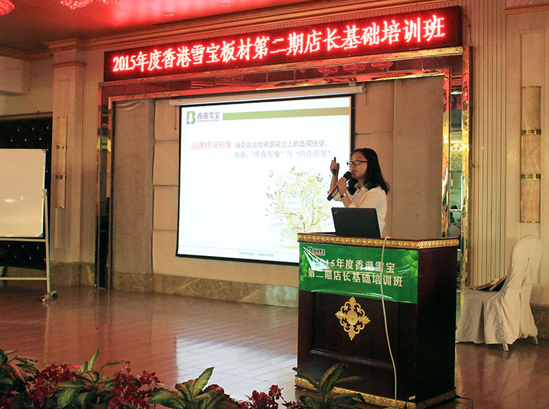 在課程中,教室里歡笑聲、鼓掌聲、口號聲此起彼伏。三天緊張學習,雪寶國內營銷中心李副總、培訓講師宋老師及其他一些講師風趣幽默、旁征博引,深入淺出地闡述了包括《雪寶系列產品介紹》、《禮儀禮節》、《專賣店店面形象要求》、《客服服務》、《廣告投放意義及報銷流程》、《裝飾公司開發流程》、《小區推廣攻略》、《專賣店銷售指導》等系列課程,講師們在傳播知識的同時,還不時與臺下積極互動,現場氣氛既緊張又活躍。