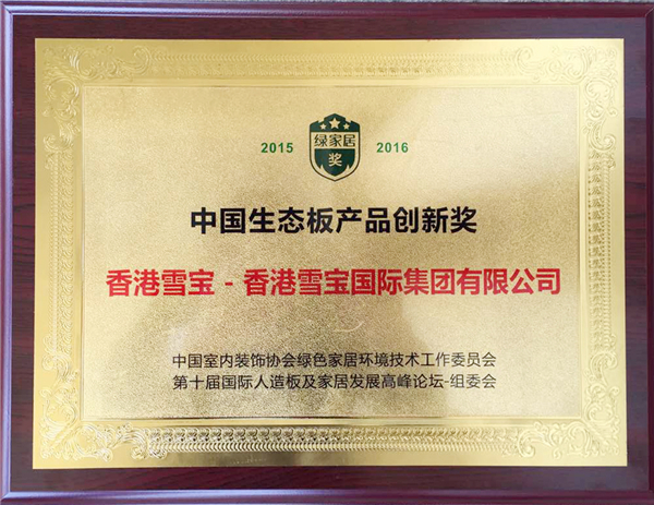 雪寶榮獲“2015—2016年度中國生態板產品創新獎”