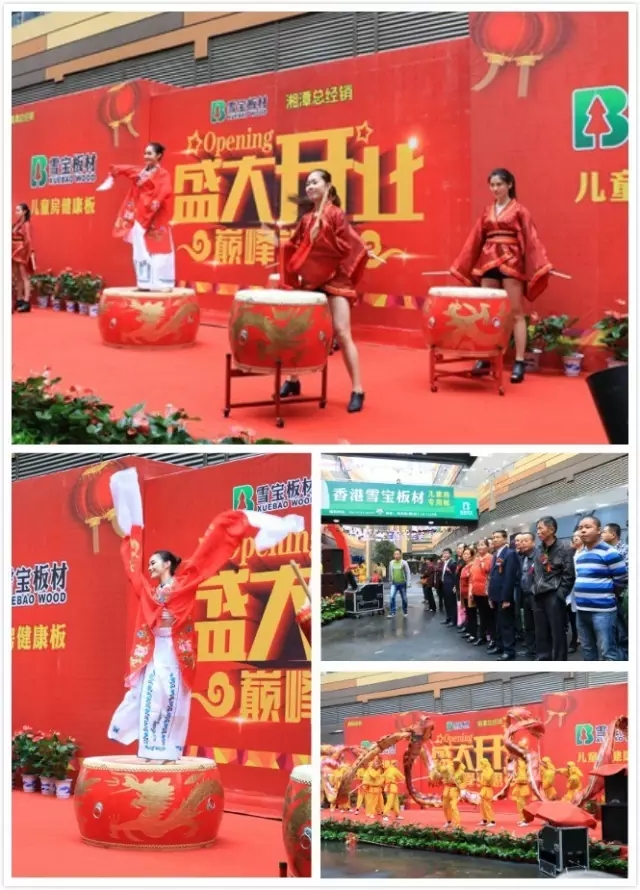 在一段鏗鏘有力的鼓舞表演后,伴隨著喜慶的鞭炮聲,到場嘉賓在主持人的引領下為湘潭旗艦店剪彩。經過精心籌備,嶄新而大氣的雪寶板材湘潭旗艦店在吉祥大門的開啟下正式開業,現場瞬間鼓聲雷動,禮炮齊鳴,彩花飛舞,人聲鼎沸。