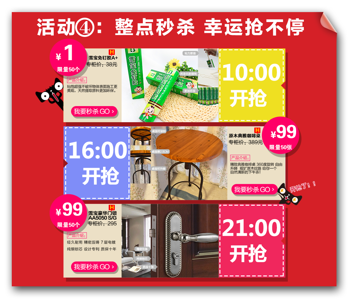 本次雪寶天貓旗艦店在雙十一國際狂歡節中將以包括“買滿即減”、“爆款低價”、“特權禮包”、“整點秒殺”、“超值換購”、“現金派送”等6大主題活動推出產品優惠方案。屆時,網友可提前選存自己屬意的產品在雙十一當日下單購買,享受最高優惠。