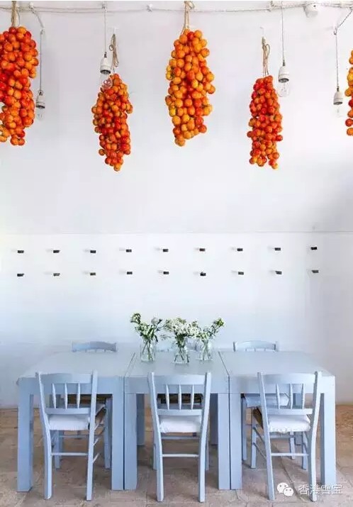 橘黃和粉藍的撞色搭配,清新自然讓人眼前一亮。