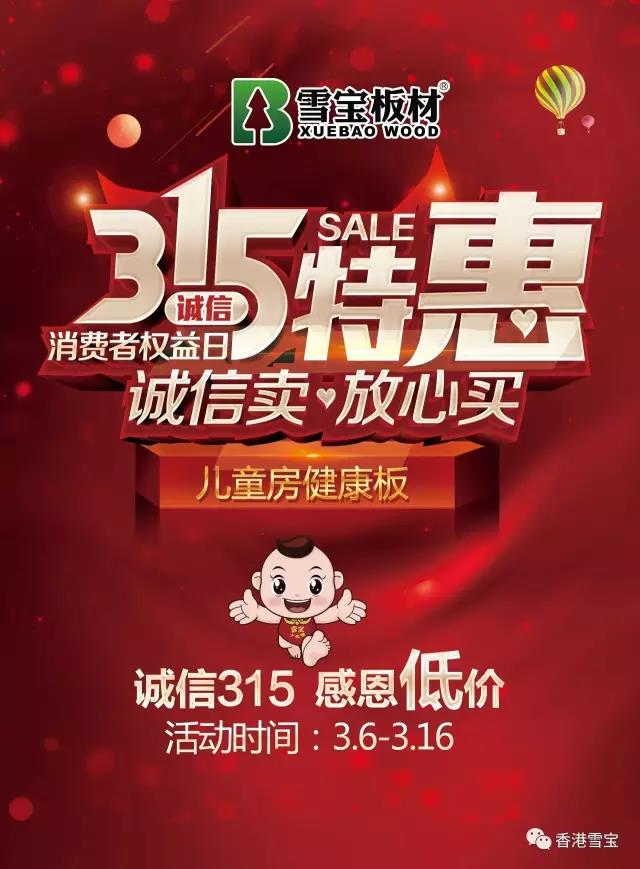 每年的315都仿佛是一道品牌的“鬼門關(guān)”,無數(shù)背后的真相浮出水面。但對于品質(zhì)有絕對信心的品牌,這一天則是鑒證實力的時刻!致力于裝飾板材領(lǐng)域發(fā)展的雪寶品牌,一直堅持產(chǎn)品健康環(huán)保的品質(zhì),讓每個家庭都能享受安全舒心的居住環(huán)境。在315這個特殊的節(jié)日里,雪寶品牌用優(yōu)惠的政策讓廣大消費者檢驗產(chǎn)品過硬的質(zhì)量!