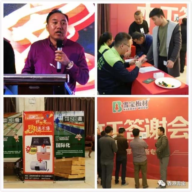 2017年3月19日雪寶板材鄂爾多斯專賣店客戶答謝會在鄂爾多斯藍海盛宴大酒店盛大召開,200多位合作伙伴和業界好友參與了此次盛會,為雪寶品牌站臺。