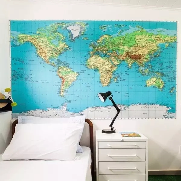 臺(tái)燈當(dāng)床頭燈使用,移動(dòng)方便,靈活性強(qiáng),加上其小巧可愛(ài)的造型又為這簡(jiǎn)約的空間帶來(lái)靈動(dòng)美。地圖裝飾墻壁,美觀的同時(shí)還可體現(xiàn)主人興趣愛(ài)好。