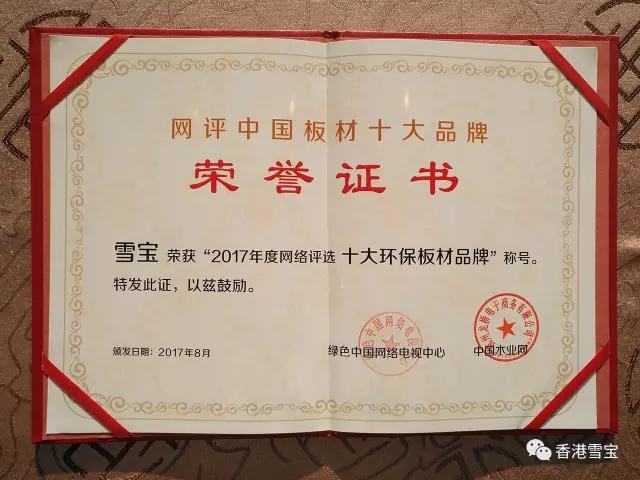 捷報頻傳!香港雪寶榮膺“十大環保板材品牌”!