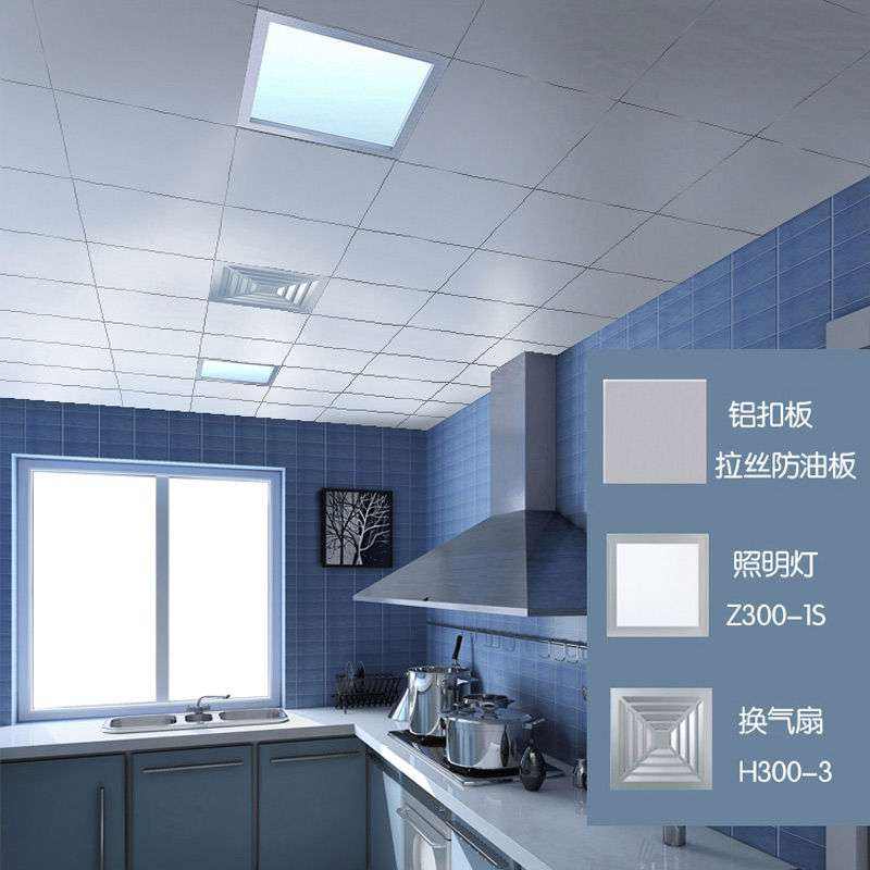 以輕鋼龍骨做安裝骨架,再把鋁扣板一塊一塊扣上去,并可以在其中任意位置添加排氣扇、燈、浴霸等組件,模塊化的組合形式十分靈活好用,從開始流行至今,在廚衛吊頂界屹立不倒。