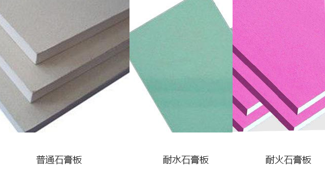 石膏板又分為耐水石膏板(綠色紙面)、防火石膏板(紅色紙面)和普通石膏板(灰色紙面),在廚衛吊頂中應該選用耐水石膏板。