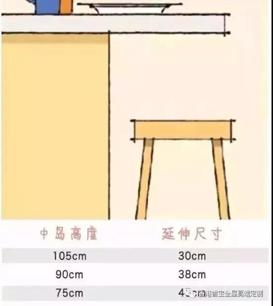②中島高度(依據椅子的高度)在90cm~105cm。