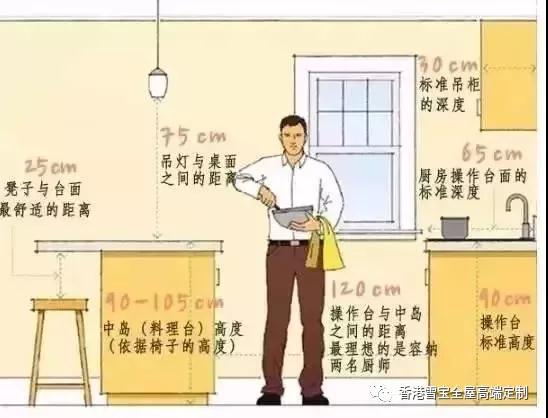 ④操作臺與中島之間的距離是120cm,最理想的是容納兩名廚師。