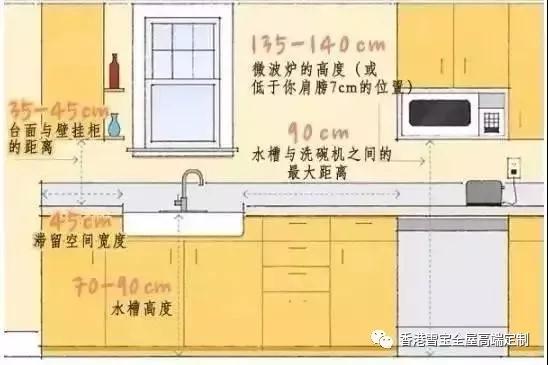 ④微波爐的高度是135cm~140cm(或低于你肩膀7cm的位置)。