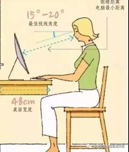 ②桌面的寬度是48cm,最佳視線角度是15°~20°。