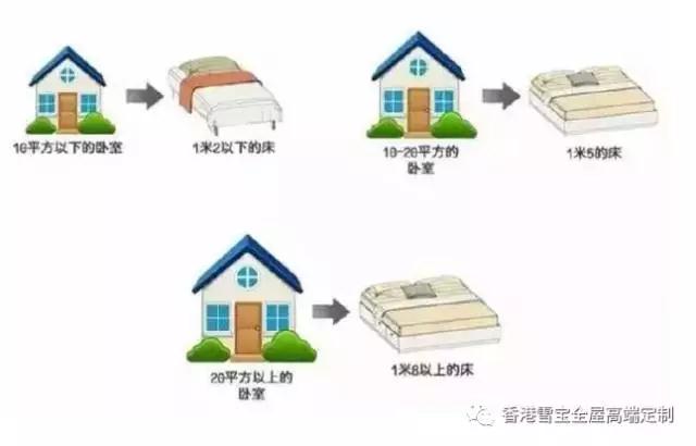 10平方米的臥室配1.2m以下的床,10平方米至20平方米配1.5m的床,20平方米以上的臥室需要配1.8m以上的床。