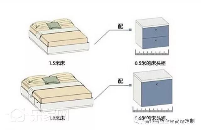 要根據(jù)床的大小而定,1500mm的床放500mm左右的床頭柜,1800mm的床需要放600mm寬以上,高度略高于床面就是最合適的。