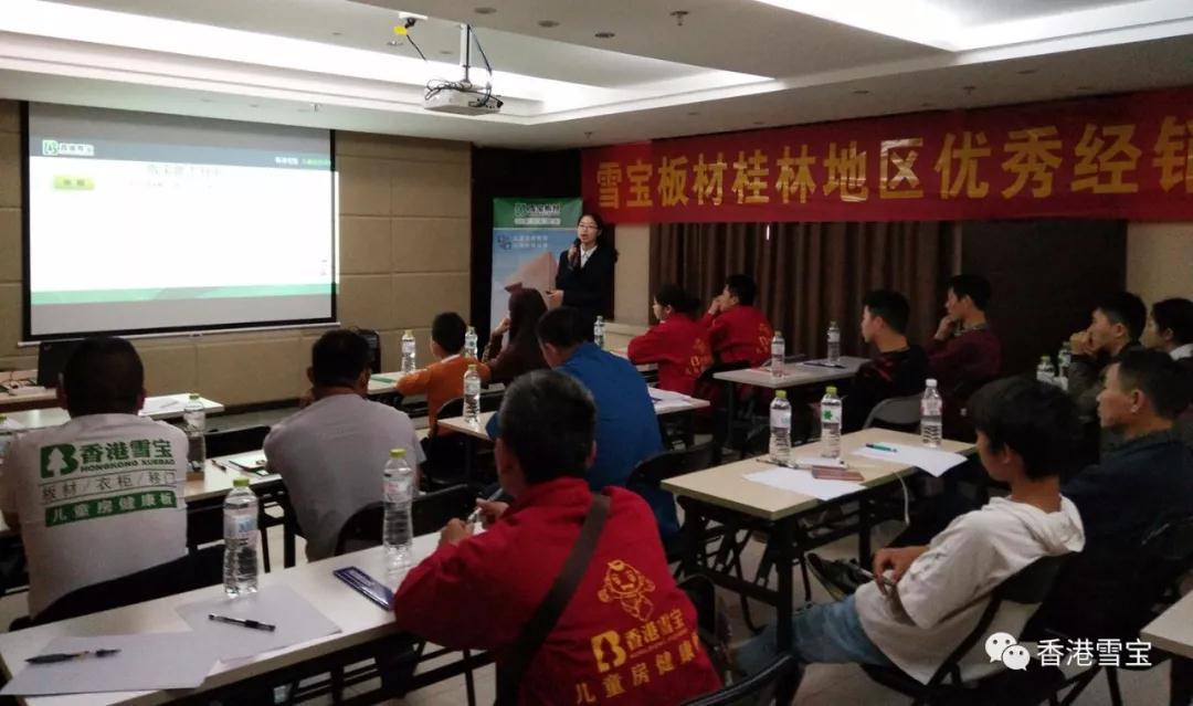 ▲雪寶板材桂林地區優秀經銷商培訓會活動現場,培訓講師杜老師深入介紹雪寶品牌發展歷程和講解雪寶品牌系列產品。
