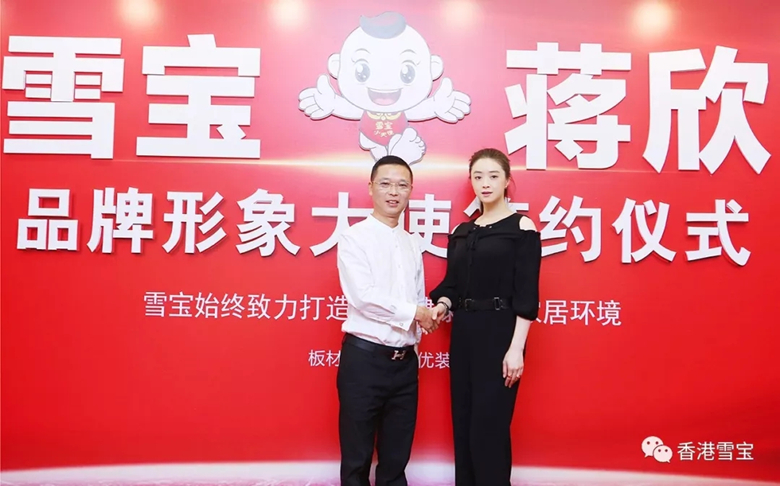 2018年5月9日,板材十大名牌雪寶特邀當紅人氣花旦蔣欣擔任品牌形象大使。湖南雪寶裝飾建材有限公司董事長李振先生出席簽約儀式,并與蔣欣正式達成簽約。